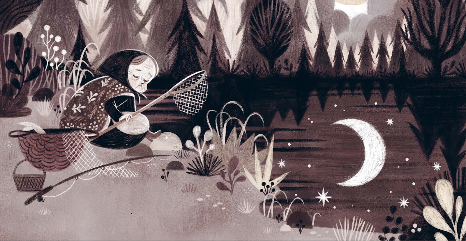 Durante el día, Iris pescaba en el río y soñaba con que cayese la noche.